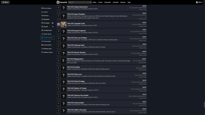 Обложка: скриншот игры Tomb Raider I-III RemasteredВ сети обратили внимание на страницу Tomb Raider I-III Remastered в SteamDB. Согласно ей, сборник получил свежее обновление с секретными достижениями — всего 15.