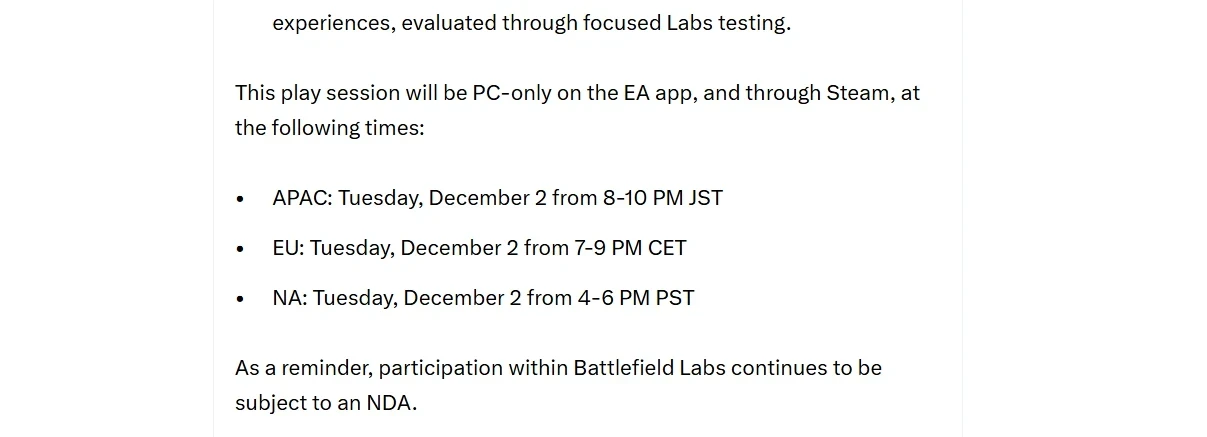 Разработчики планируют провести ещё больше тестов в рамках Battlefield Labs в будущем. Они помогут поэкспериментировать, опробовать различные функции до их утверждения и получить реальные отзывы игроков. Все участники Battlefield Labs подписывают соглашение о неразглашении.
