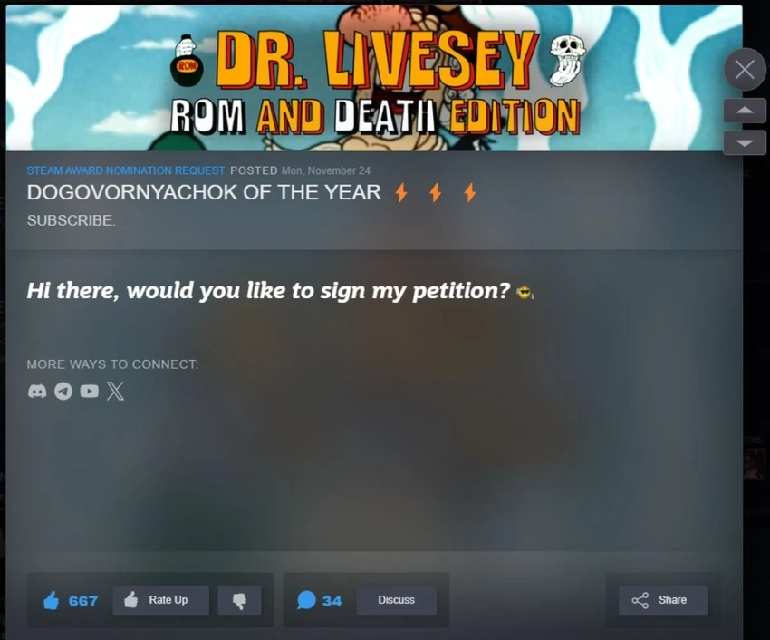 Но вот что забавно. В комментариях к посту RWS многие пользователи соцсети X принялись негодовать по поводу созданного Agafonoff шутера DR LIVESEY ROM AND DEATH EDITION.