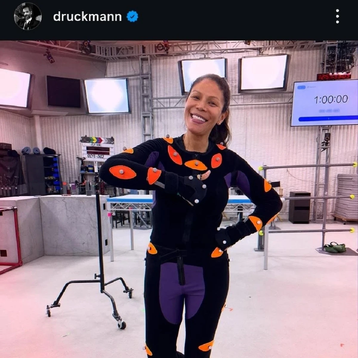 Обложка: скриншот игры The Last of UsРуководитель Naughty Dog Нил Дракманн поделился фотографией актрисы Мерл Дэндридж. Она позирует в знакомом костюме для захвата движений на съёмочной площадке.